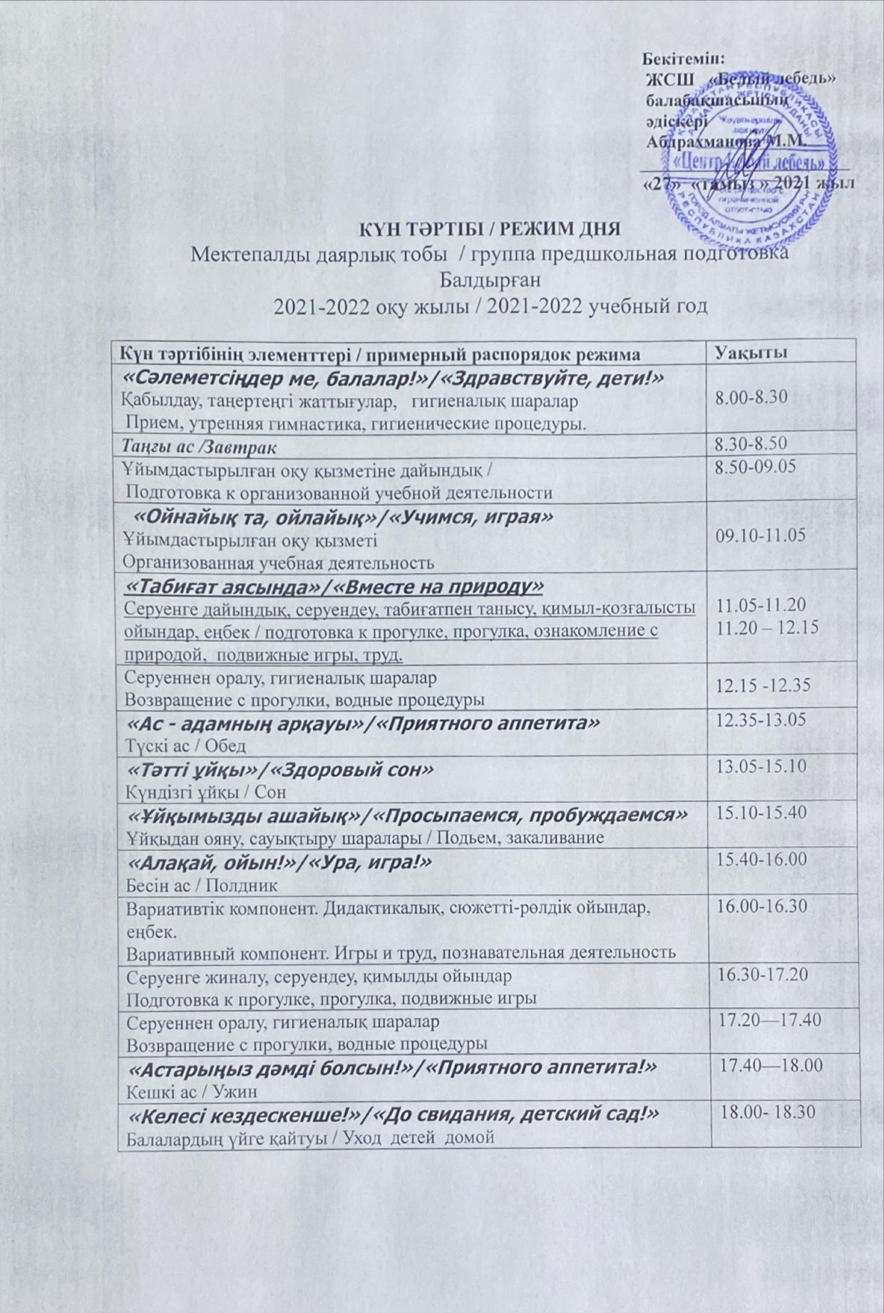 Предшкольная группа "Балдырған" » «ТОО «Центр Белый Лебедь»